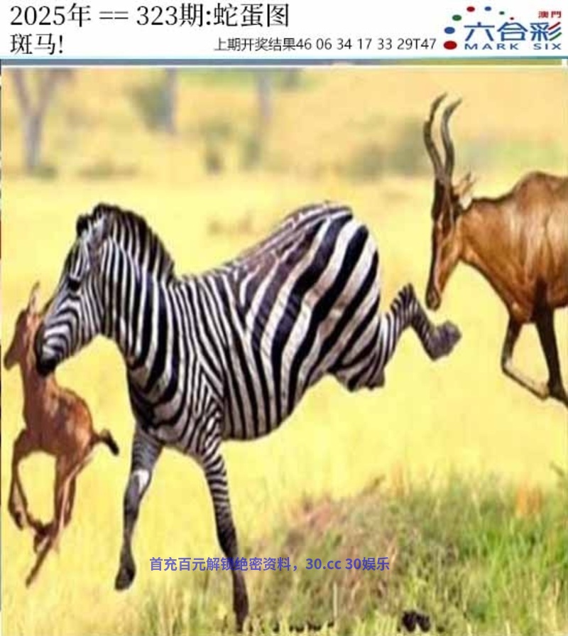 | 323期蛇蛋图:【斑马!】 解图:图中斑马! 解特⑨肖:马牛蛇兔羊鼠猴虎鸡 |